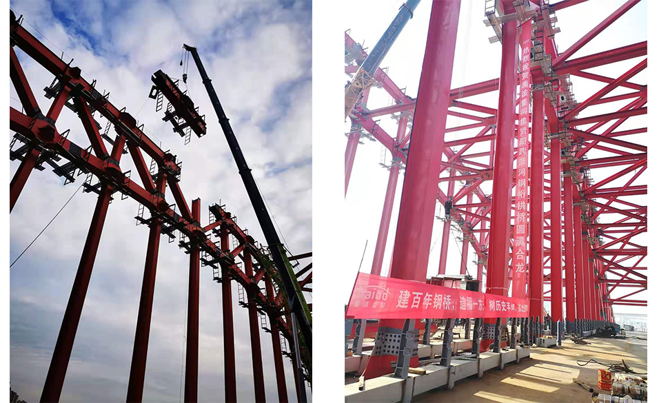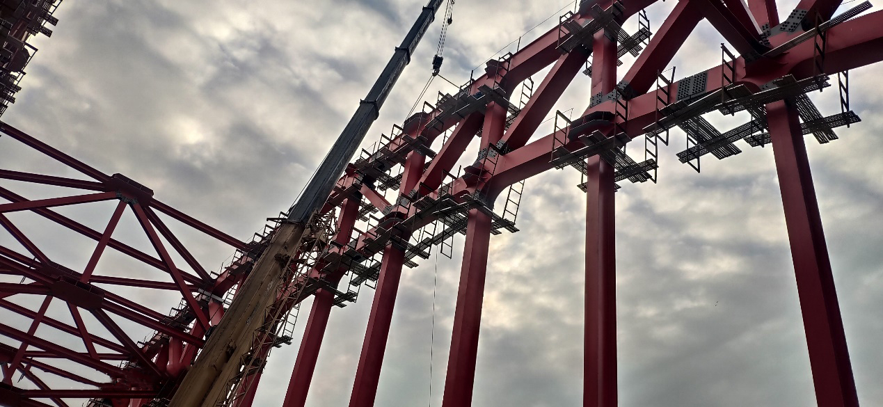 ? ? ? ?上午10時許,伴隨著起吊信號指令的發(fā)出,主拱合龍弦桿順勢吊起,在各方單位領(lǐng)導的共同見證下,歷時1個多小時的主拱合龍段的安裝工作順利完成,標志著合肥集賢路跨派河橋主拱正式合龍。合肥市重點工程建設(shè)管理局相關(guān)領(lǐng)導、安徽省公路橋梁工程有限公司集賢路項目部相關(guān)領(lǐng)導、安徽省公路工程建設(shè)監(jiān)理有限責任公司相關(guān)領(lǐng)導及海波重科合肥集賢路項目部全體人員等共同見證了集賢路跨派河橋成功合龍。