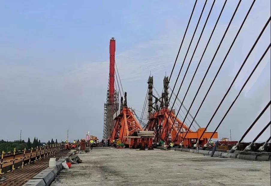 上海泖港項(xiàng)目部還通過(guò)多種創(chuàng)新技術(shù)及方案,賦予主橋諸多新的“閃光點(diǎn)”:通過(guò)采用球鋼支座和疊層橡膠支座的支承體系,大幅提升了塔梁固接體系斜拉橋的抗震性能;鋼主梁兩側(cè)設(shè)置后拼裝挑臂,通過(guò)時(shí)間和空間的錯(cuò)位實(shí)施,巧妙地增加了橋梁的安全距離,減小了相互干擾。泖港大橋改建完成后,大橋距離水面高度將完全滿(mǎn)足IV級(jí)航道的通航需要,提升航道運(yùn)輸能力,使整個(gè)平申線(xiàn)航道成為浙滬之間的一條水上高速通道,對(duì)支撐上海市國(guó)際航運(yùn)中心建設(shè)、改善黃浦江上游地區(qū)交通條件、環(huán)境質(zhì)量和防洪除澇能力具有重要作用。