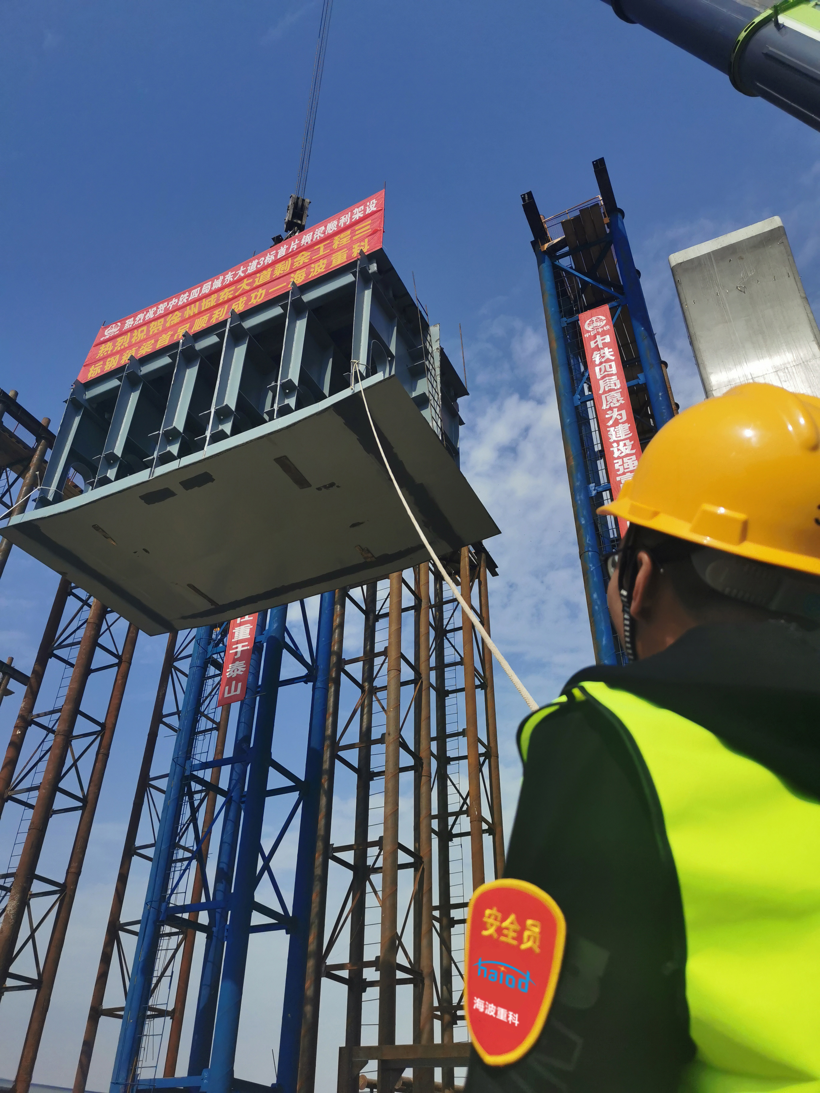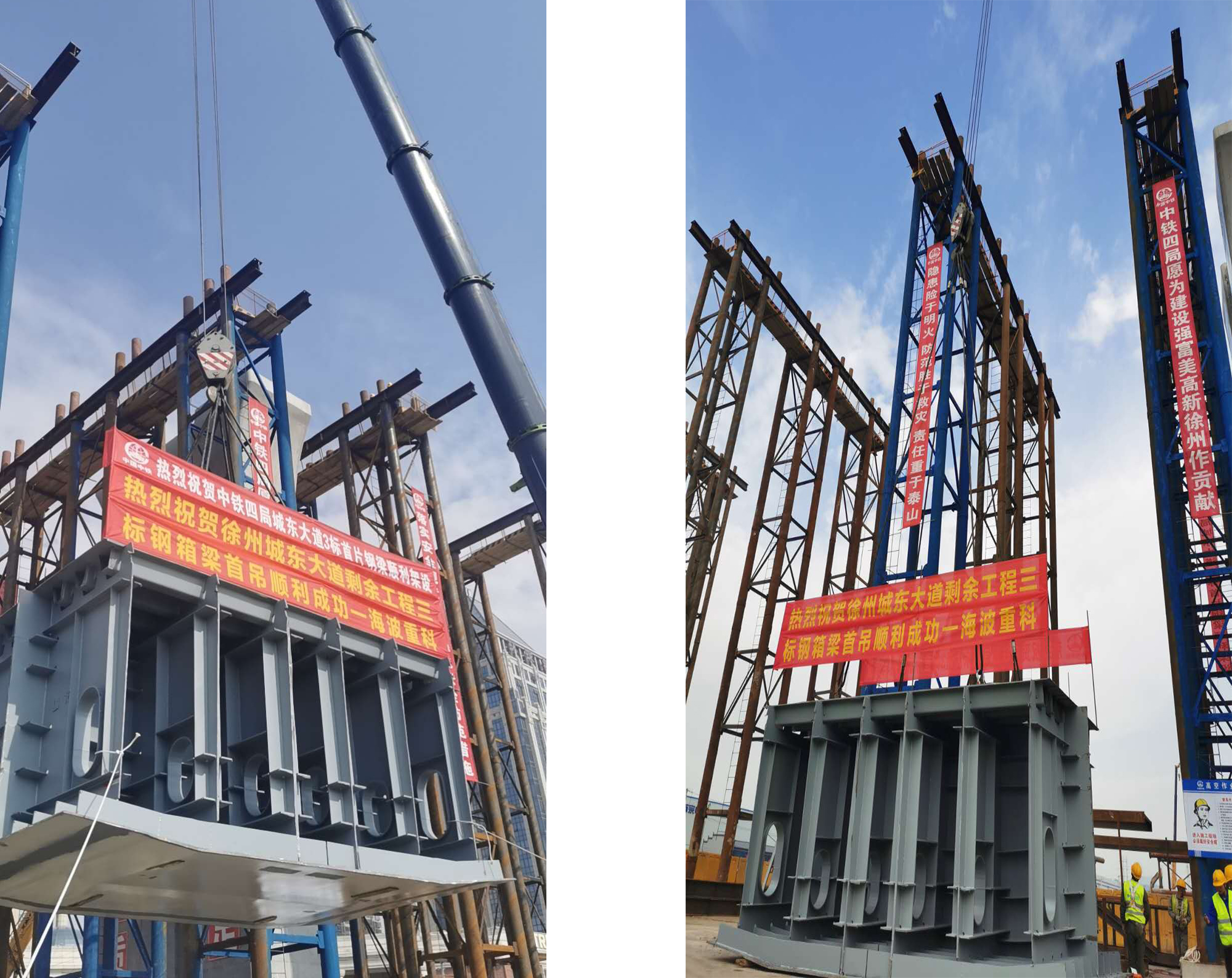(海波重科新聞報(bào)道)2020年10月26日上午,徐州城東大道項(xiàng)目現(xiàn)場(chǎng),伴隨著現(xiàn)場(chǎng)數(shù)百人的目光,首片鋼箱梁準(zhǔn)確無誤的落在預(yù)定架設(shè)點(diǎn),這一刻標(biāo)志著徐州城東大道剩余工程3標(biāo)向著全面完工順利通車又前進(jìn)了一大步!