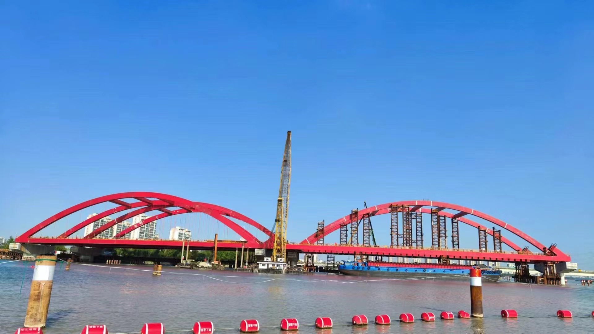 工程預(yù)計(jì)今年年底竣工。建成后的新勝浦大橋?qū)⒕徑鈪卿两瓋砂督煌ㄟ\(yùn)輸壓力,橋下空間還能適應(yīng)1000噸級船舶大型化和集裝箱運(yùn)輸,節(jié)約運(yùn)輸成本。將會(huì)給吳淞江兩岸居民交通出行帶來極大便利,也是加快構(gòu)建長江三角洲地區(qū)高等級航道網(wǎng),促進(jìn)上海國際航運(yùn)中心建設(shè)的重要一環(huán)。