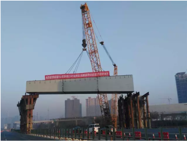 祝賀海波公司鄭州南三環(huán)2標(biāo)跨高速主線首段吊裝就位!