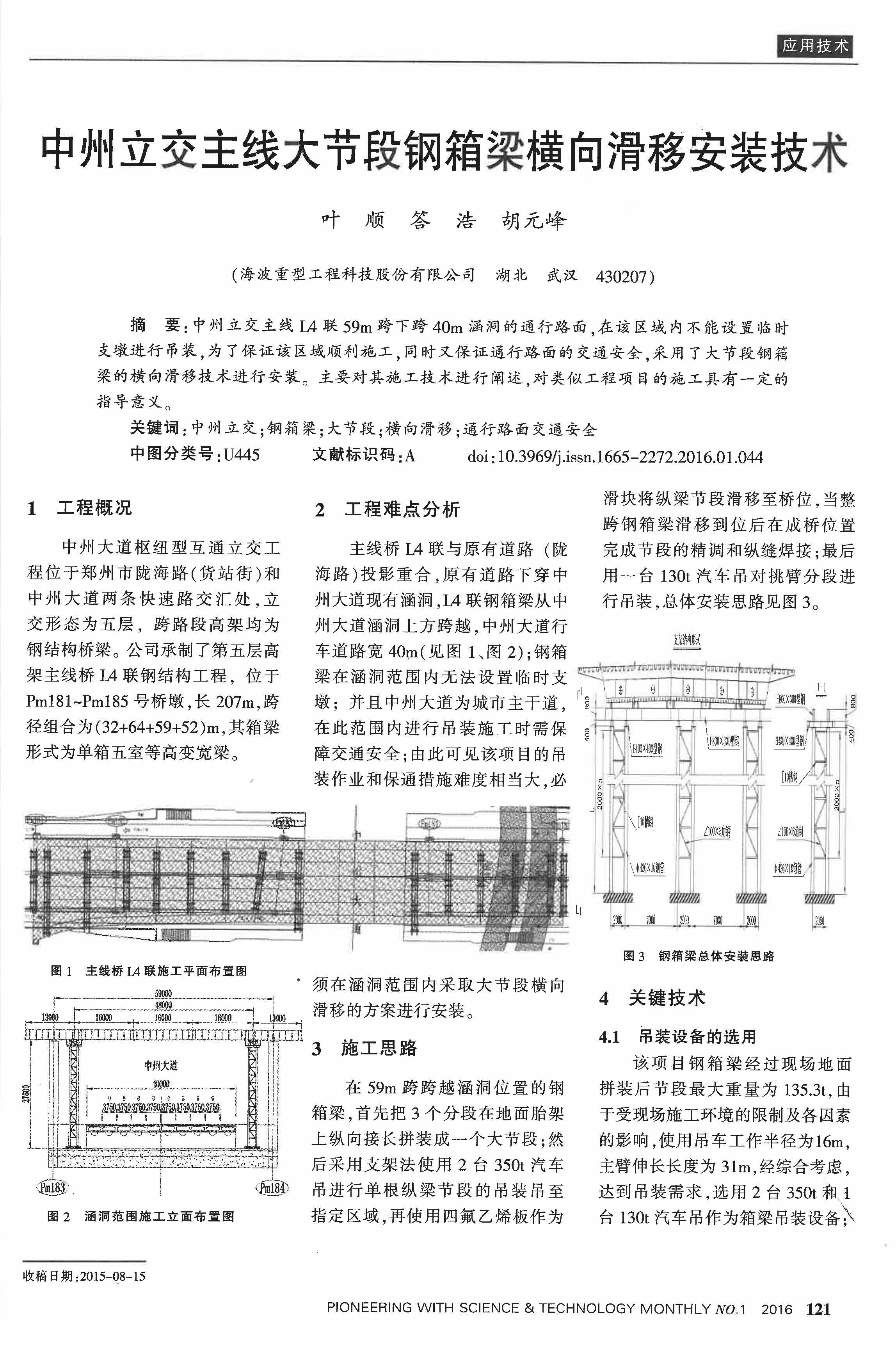 中州立交主線大節(jié)段鋼箱梁橫向華裔安裝技術(shù)